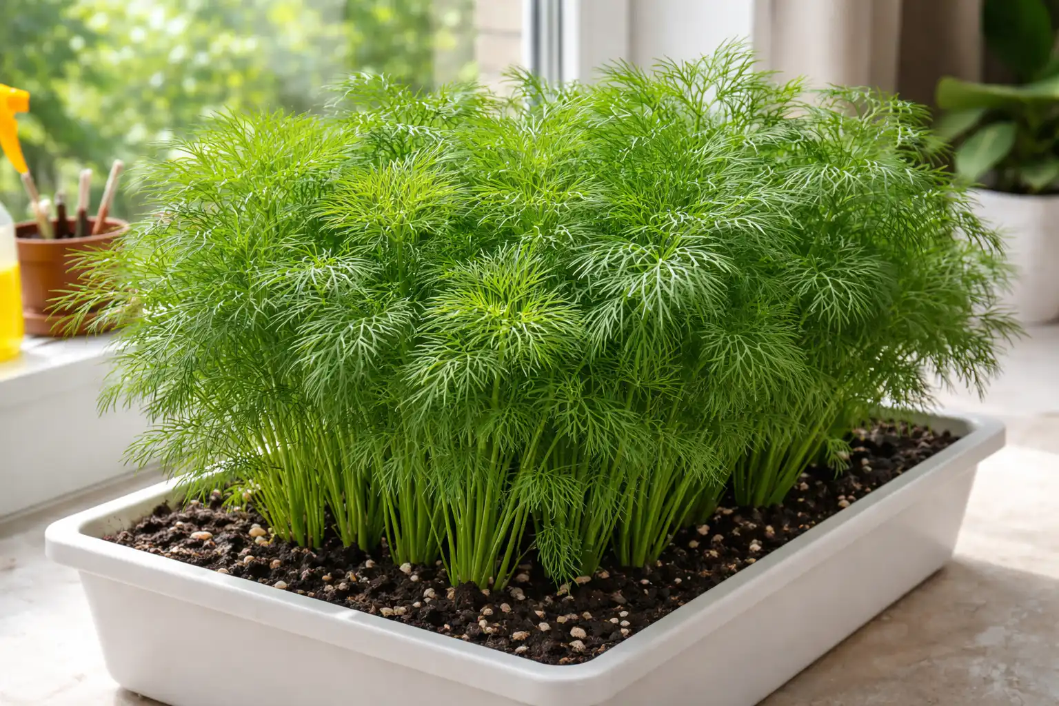 Glavna skrivnost uspeha je, da kopra ne sejete v globoke lonce. Njegov koreninski sistem je površinski, zato se v širokih in plitvih koritih vlaga enakomerno porazdeli, kar izključuje nastanek plesni ob vznožju stebla.